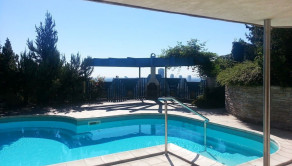 Interiér vily tvorí nadčasový moderný dizajn a kvalitné materiály použité pre podlahy, stropy, svietidlá, schodisko, vitráže. Vila je slnečná, s výhľadom na celé mesto, v tichom prostredí Horského parku a neprejazdnej ulice. V záhrade rastú okrasné dreviny, jedlý gaštan.