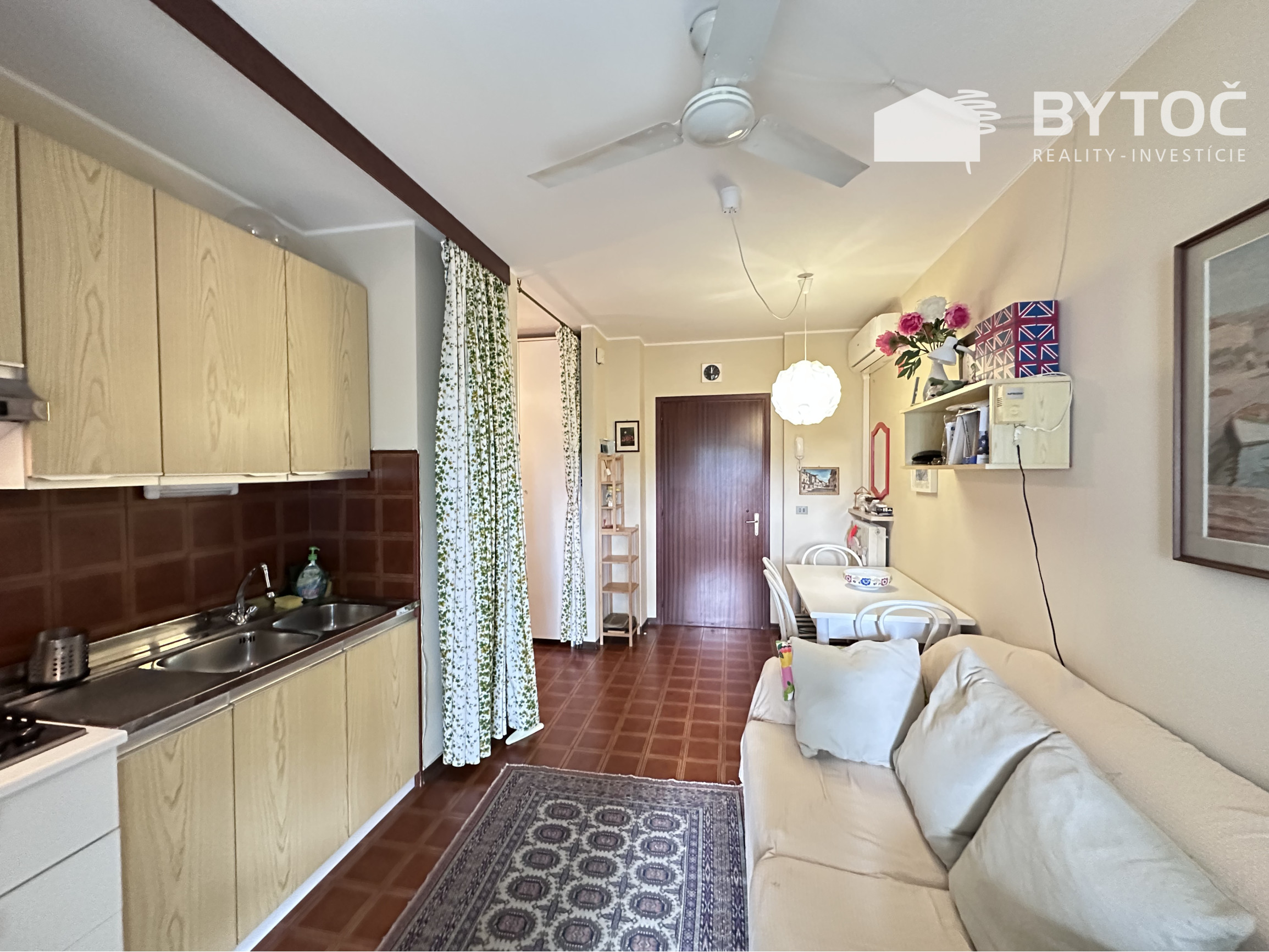 PREDANÉ! Na slnečnom ostrove Grado v Taliansku, kde začína Benátska riviéra ponúkame na predaj 2-izbový byt v rezidenčnej štvrti Pineta. Byt má rozlohu 39 m2 a nachádza sa na 1. poschodí budovy 300 metrov od mora v blízkosti hlavných služieb, ako je obchod s potravinami, reštaurácie a zastávky mestských autobusov, z ktorých sa dostanete všetky hlavné atrakcie Grada.