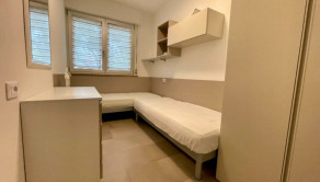 Apartmán so samostatným vchodom, je zrekonštruovaný a vyznačuje sa moderným a príjemným prostredím, je vybavený všetkým komfortom a použiteľný po celý rok. Pozostáva z obývacej izby, kuchynskej časti, dvoch spální a kúpeľne so sprchovacím kútom. K dispozícii je nekryté parkovacie miesto a spoločná záhrada s dvoma bazénmi. K dispozícii je aj kyvadlová doprava na pláž za pár minút. Cena: 179.000 € (+ poplatky).