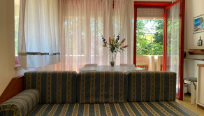 Byt pozostáva zo vstupnej haly, kuchynky s oknom, obývačky s veľkými oknami, spálne, kúpeľne so sprchou a veľkej rohovej terasy orientovanej na juhovýchod (cca 20 m2). Cena: 139.000 € (+ poplatky). Ostrov Grado je s pevninou spojený dvoma mostami, teda nie je potrebné využívať dodatočnú prepravu trajektom