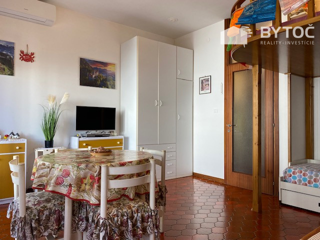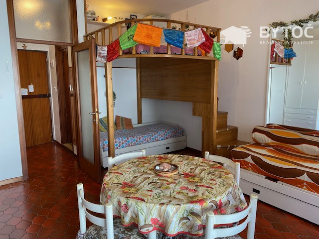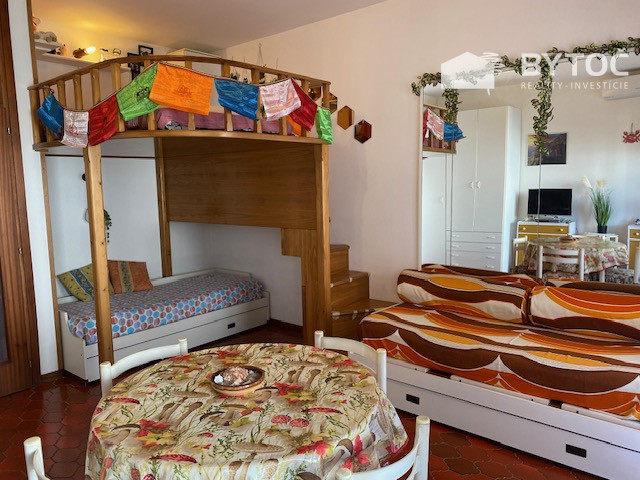Štúdiový apartmán pozostáva zo vstupnej chodby, obývacej izby s mezanínovým spaním, samostatnou kuchynkou, kúpeľňou so sprchou a terasou. Pridelené parkovacie miesto. Klimatizácia. Cena: 90.000 € (+ poplatky). Ostrov Grado je s pevninou spojený dvoma mostami, teda nie je potrebné využívať dodatočnú prepravu trajektom
