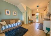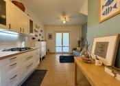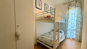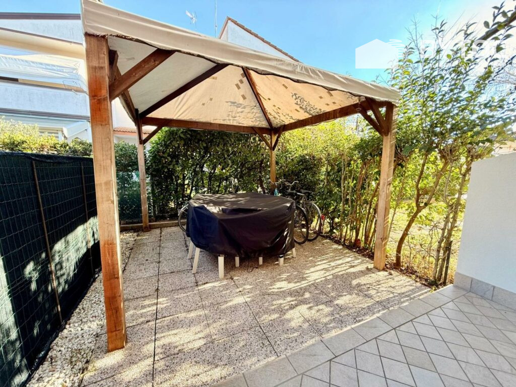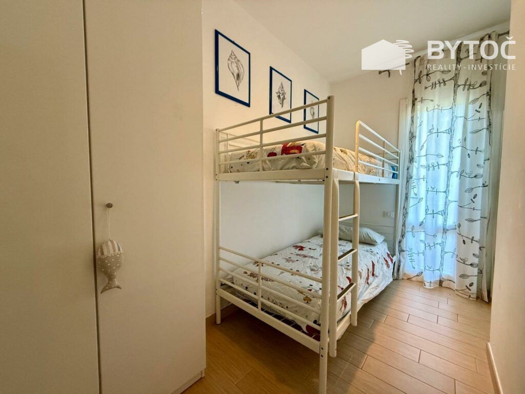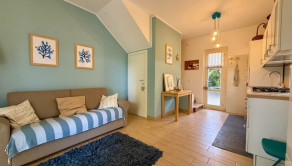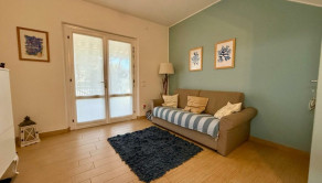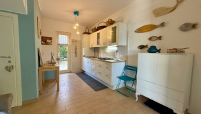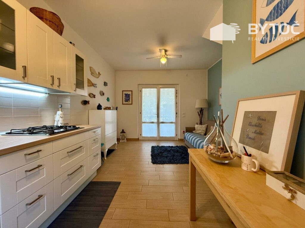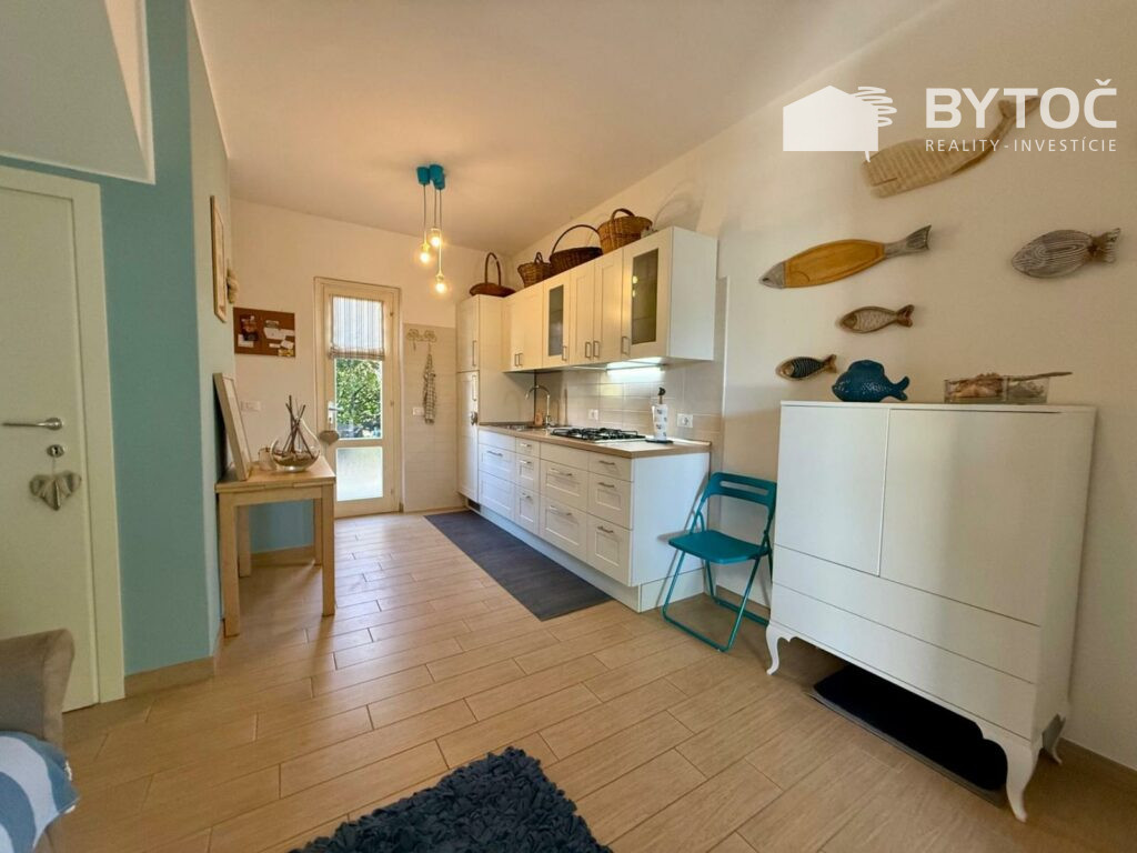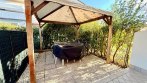 Na prízemí sa nachádza obývacia miestnosť s oddeleným kuchynským kútom, prístupom na veľkú krytú terasu s altánkom a taktiež vstupom do súkromnej predzáhradky s ďalšou krytou terasou s markízou. Na prvom poschodí sa okrem kúpeľne s oknom nachádzajú dve spálne (jedna s manželskou posteľou) obe s výstuom na vlastný balkón (resp. malú terasu). Výmera 75m2 (+ terasy a pozemok) Parkovanie priamo pred budovou. Vdialenosť od pláže Bibione Spiaggia cca 1000 metrov (cca 12 min pešo). Cena: 218.000 € (+ poplatky).