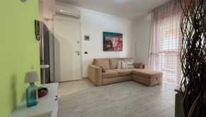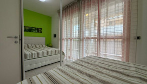 Nedávno zrekonštruovaný apartmán vhodný na celoročné využívanie pozostáva zo samostatnej kuchyne, svetlej obývacej izby (obe s priamym prístupom na dve obytné terasy, ideálne na stolovanie pod holým nebom alebo relax po dni strávenom na pláži) a dve priestranné spálne s priľahlou kúpeľňou. Apartmán je vybavený klimatizáciou s tepelným čerpadlom, ktorá zaisťuje pohodlie a komfort aj v zime. Apartmán je ideálnou voľbou pre tých, ktorí hľadajú praktické, dobre udržiavané a ihneď obývateľné útočisko pri mori. Cena: 179.000 € (+ poplatky).