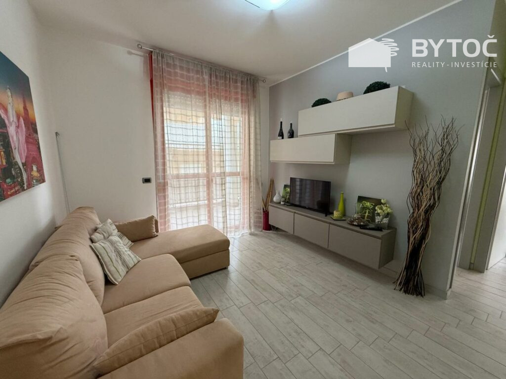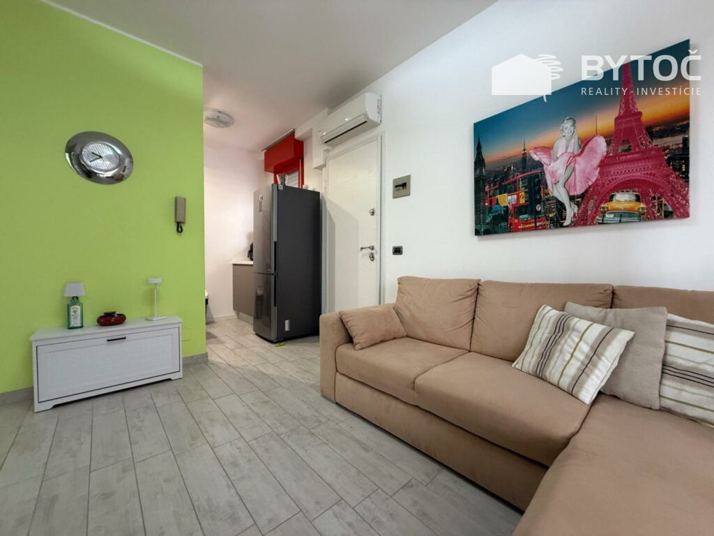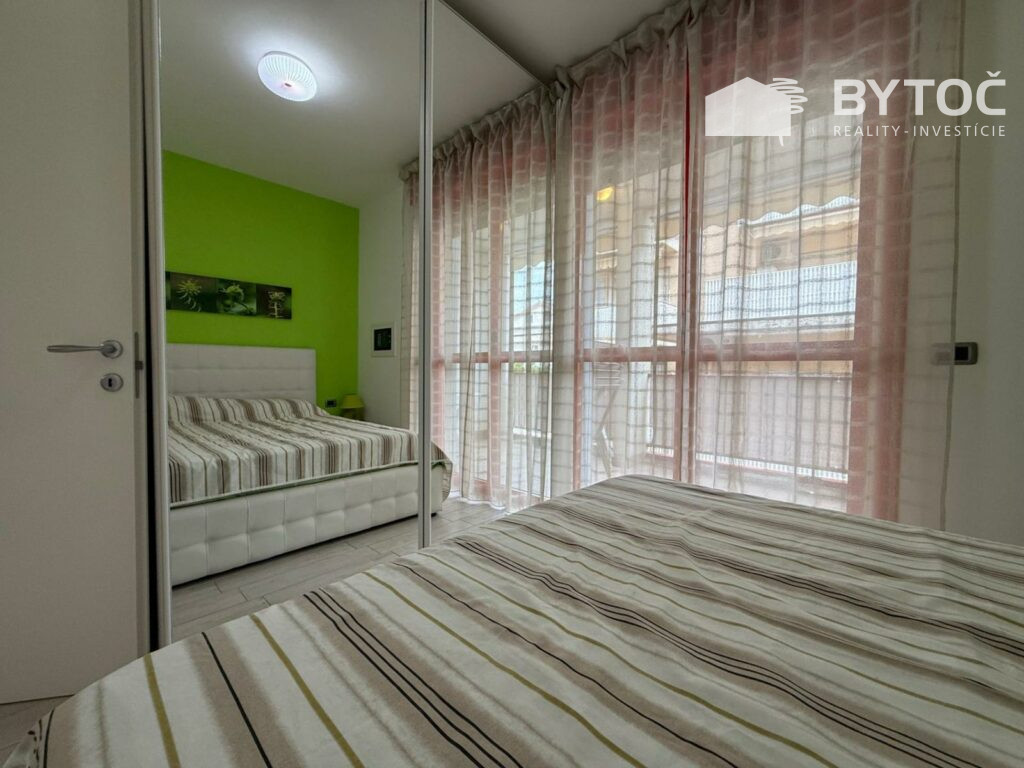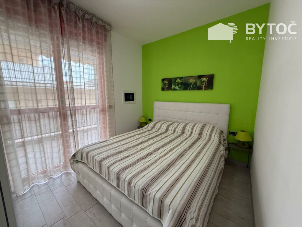 V centrálnej lokalite v Taliansku - letovisku Bibione ponúkame na predaj zrekonštruovaný 3-izbový apartmán s 2x terasou a garážou. Byt má rozlohu 72 m2 a nachádza sa na 1. poschodí apartmánovom domu s výťahom len 10 minút pešo od mora.