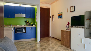 Byt pozostáva zo vstupnej haly, kuchynského kúta, obývačky, jednej spálne, kúpeľne so sprchou a verandy s terasou. Inverterová klimatizácia. Cena: 120.000 € (+ poplatky). B Ostrov Grado je s pevninou spojený dvoma mostami, teda nie je potrebné využívať dodatočnú prepravu trajektom