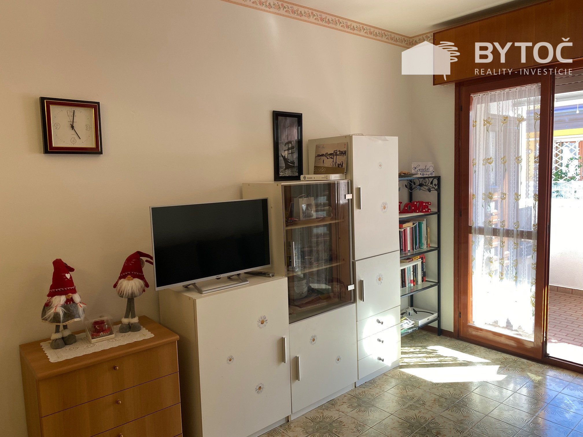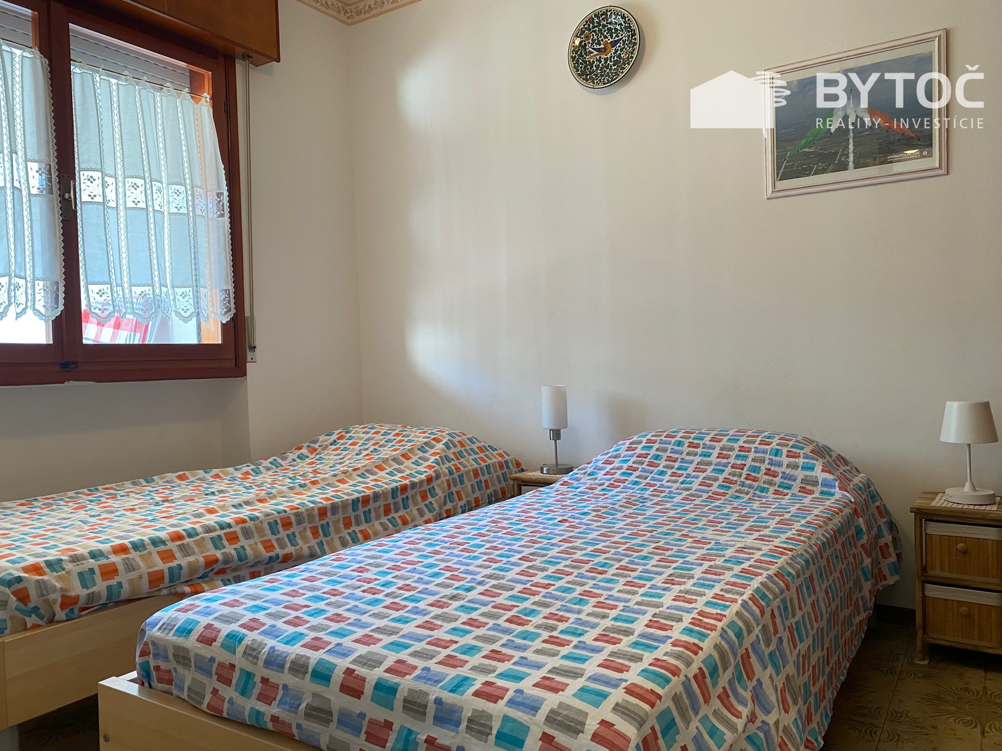 Na slnečnom ostrove Grado v Taliansku, kde začína Benátska riviéra ponúkame na predaj 2-izbový byt v rezidenčnej štvrti Pineta, v tichej oblasti plnej zelene a píniových stromov. Byt má rozlohu 47 m2 a nachádza sa na 4. poschodí budovy s výťahom. Len 100 metrov od pláže!