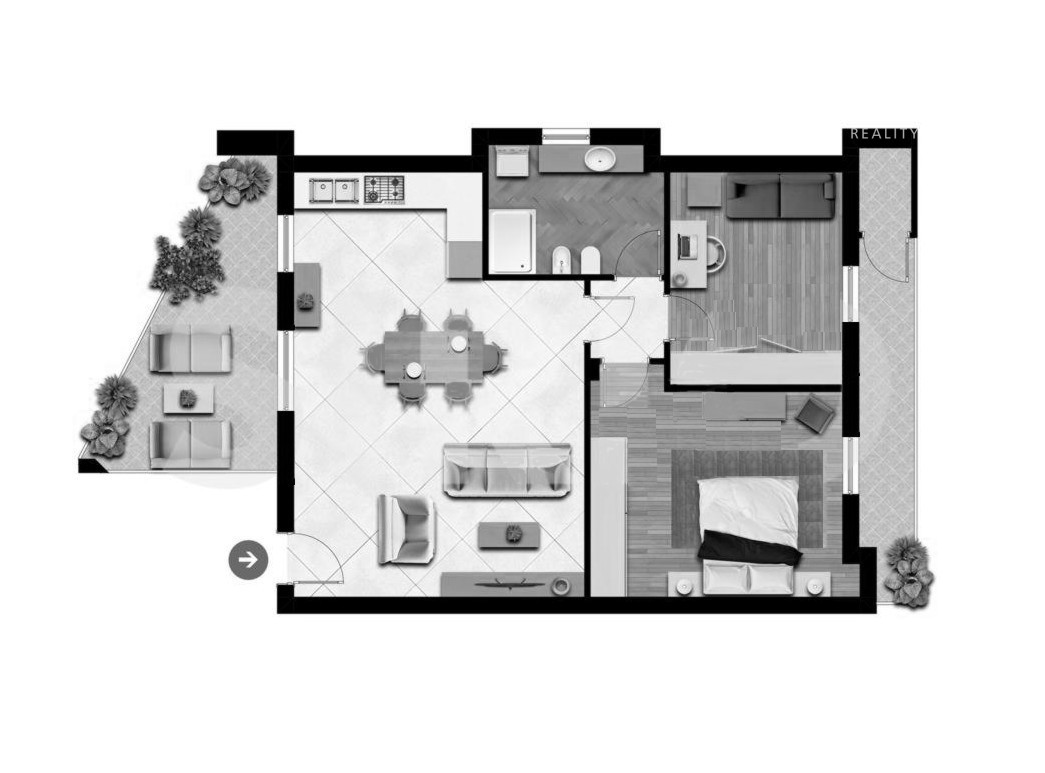 Apartmán s rozlohou 97m2 sa nachádza v dobre udržiavanej budove cca 5 min. od centra a len pár krokov od športového cetra (telocvične a bazén). Pozostáva s priestrannej, svetlej obývacej izby s kuchynskou časťou (30 m2) s priamym prístupom na krytú terasu (ideálna na stolovanie pod holým nebom), dvoch spální (obe so vstupm na druhú terasu,) a kúpeľne s oknom. Nechýba pivnica a kryté parkovacie miesto.