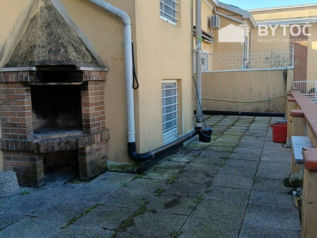 Apartmán v pôvodnom stave má rozlohu 118 m2 a pozostáva z priestrannej obývacej izby, jedálne s krbom a prístupom na veľkú terasu (cca 40m2), kuchynky, dvoch spální a kúpeľne s oknom. Byt s vysokými stropmi je vhodný na rekonštrukciu aby sa naplno využil jeho potenciál. Výhodná cena, céntrálna poloha ale aj blízkosť kľúčových zariadení robia túto nehnuteľnosť vhodnou aj na zhodnotenie vložených investícii. Cena 85.000 € (+ poplatky).
