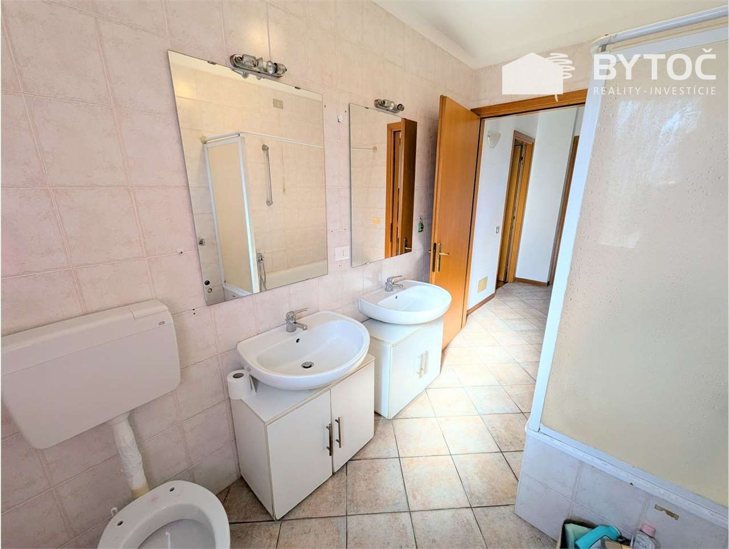 Svetlý 4-izbový mezonet s celkvou podlahovou plochou 136 m2 pozostáva z veľkej obývacej izby, kuchyne, dvoch izieb, 2x kúpelne 2x terasy a velkej podkrovnej izby (výška cca 1,7 metra). Nezávislé kúrenie kotlom. V cene bytu je aj nekryté parkovacie miesto (nie je však podmienkou kúpy - 1 000 €!). Budova kondomínia leží na vlastnom oplotenom pozemku. Cena: 114 000 € (+ poplatky). Výhodná poloha neďaleko historického mestečka Aquilea, iba 20 min. autom na pláž (Grado) a neďaleko cyklotrasy na ostrov Grado.