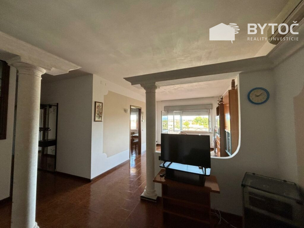 Piestranný apartmán s rozlohou 105 m2 pozostáva z obývacej izby s prístupom na veľkú terasu (22 m2) s krásnym výhľadom na mesto, ďalej z jedálne, kuchyne, kúpeľne, šatníka (komory) a dvoch pohodlných spální. Nezávislé kúrenie. Cena 115.000 € (+ poplatky).