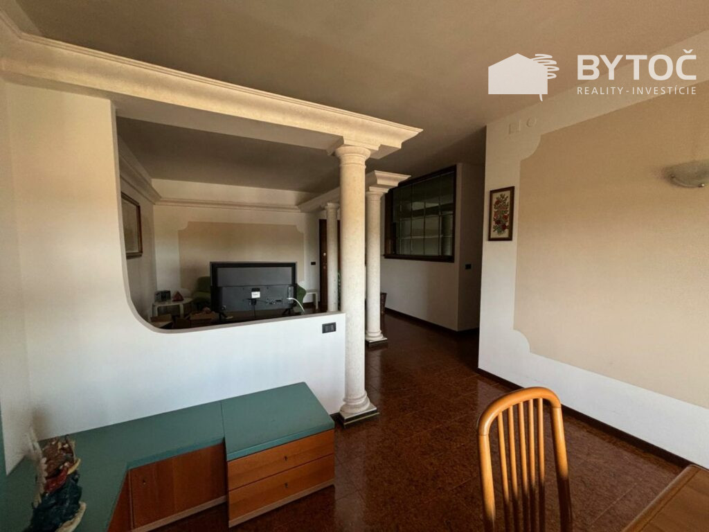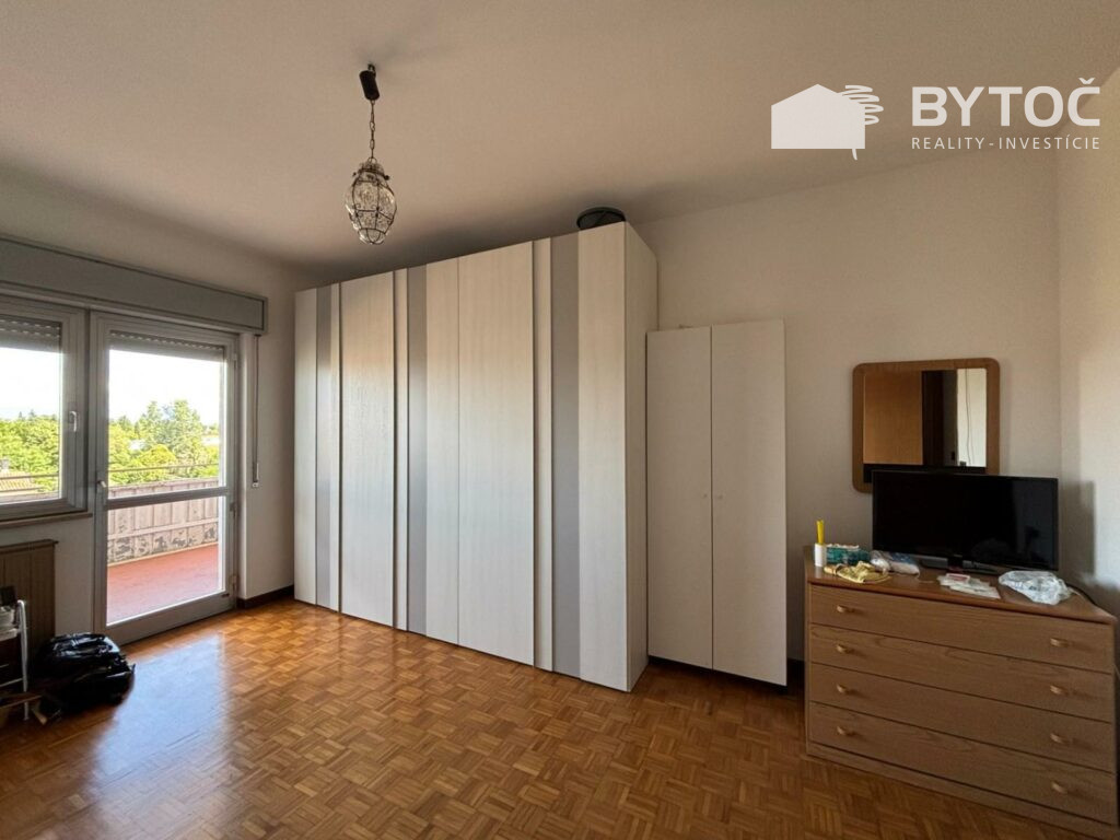Neďaleko pobrežia a letoviska Lignano (resp. Bibione, či Grado) v Taliansku, ponúkame v mestečku San Giorgio di Nogaro na predaj veľký 3-izbový byt s veľkou terasou a parkovaním. Apartmán sa nachádza na 3. poschodí budovy s výťahom vlastným dvorom a pozemkom, kde je možné parkovanie vlastníkov. Na pláž do letoviska Lignano (resp. Grado) je to len 30 min. autom. Vhodné aj na cyklotúry po okolí, resp. k lagúne (Laguna di Marano).