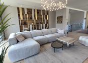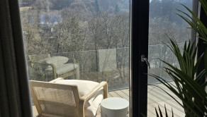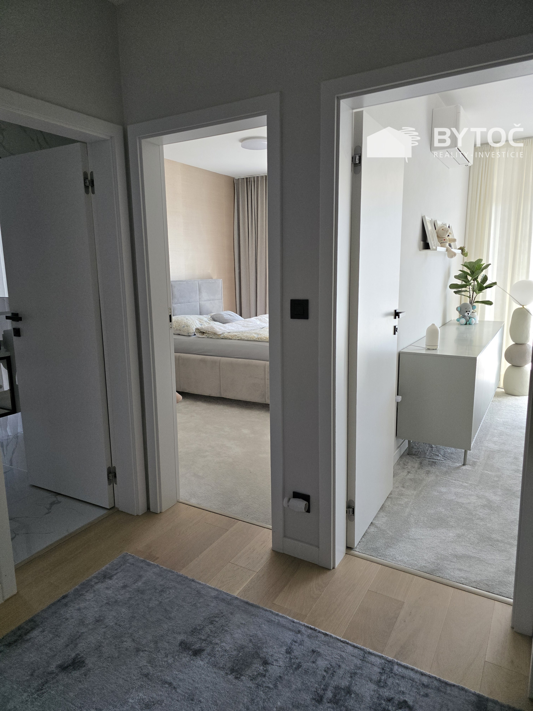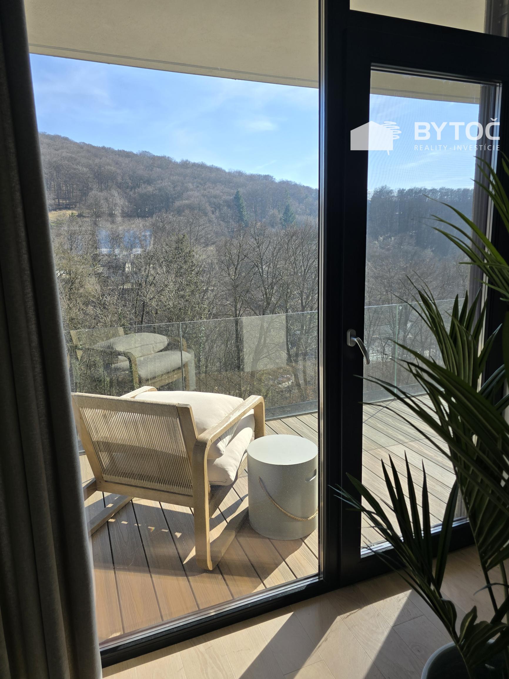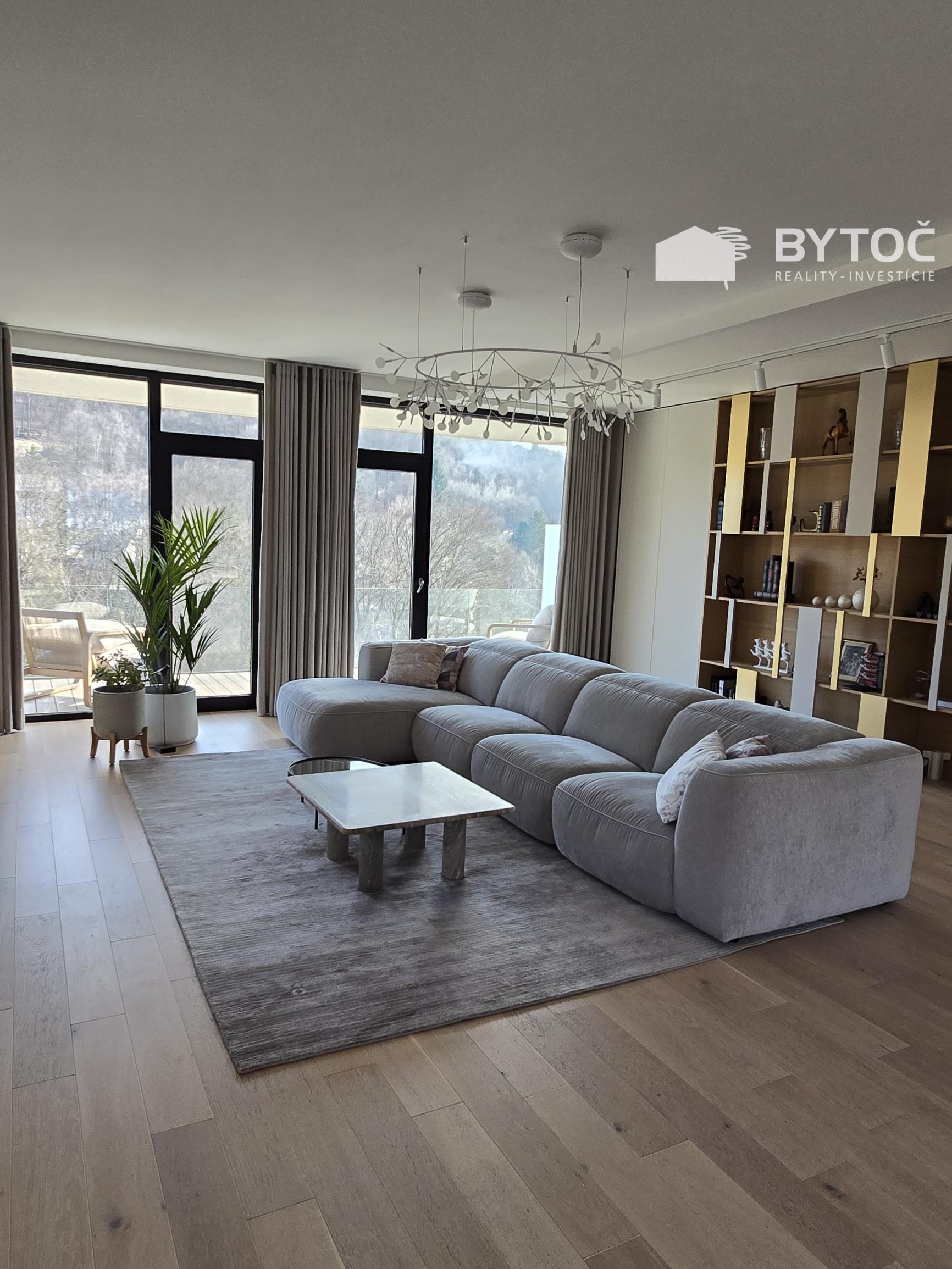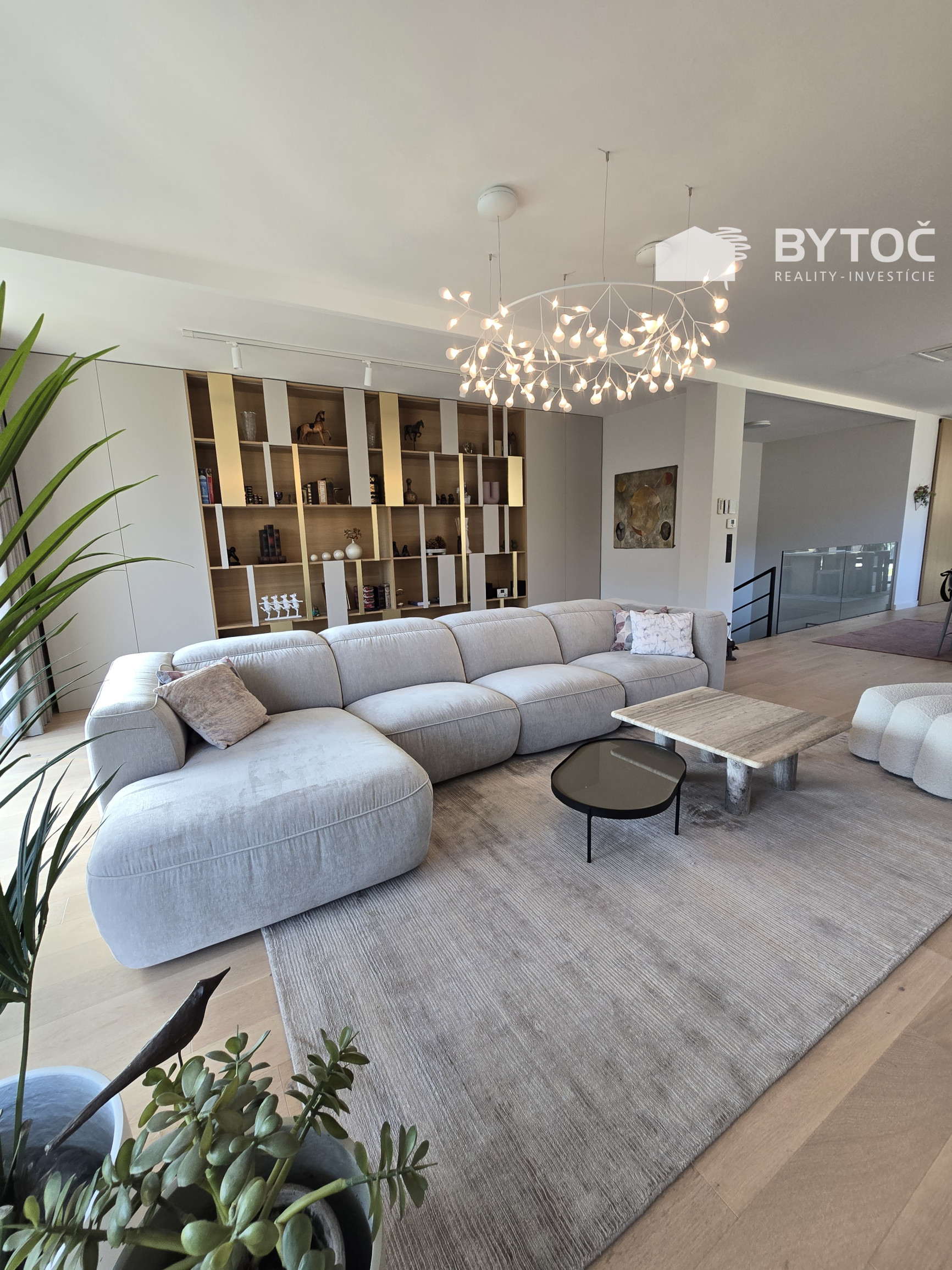 Interiér je vyhotovený v nadštandardnom prevedení s dôrazom na kvalitu použitých materiálov. Kuchyňa je prevažne vybavená vstavanými spotrebičmi značky Miele. Samozrejmosťou je klimatizácia,, domaci vrátnik, exteriérové screenove rolety,TV a wifi pripojenie / optický kabel /. Nehnuteľnosť je pripravená na okamžité komfortné bývanie bez ďalších investícií. byt sa predáva s jestvujúcim zariadením okrem osobných veci. Byt sa nachádza v uzavtvorenom oplotenom areáli. Mesačné naklady na energie, vodu, smeti a pod. cca 200,-€. V obývačke je situovaná príprava na krb.