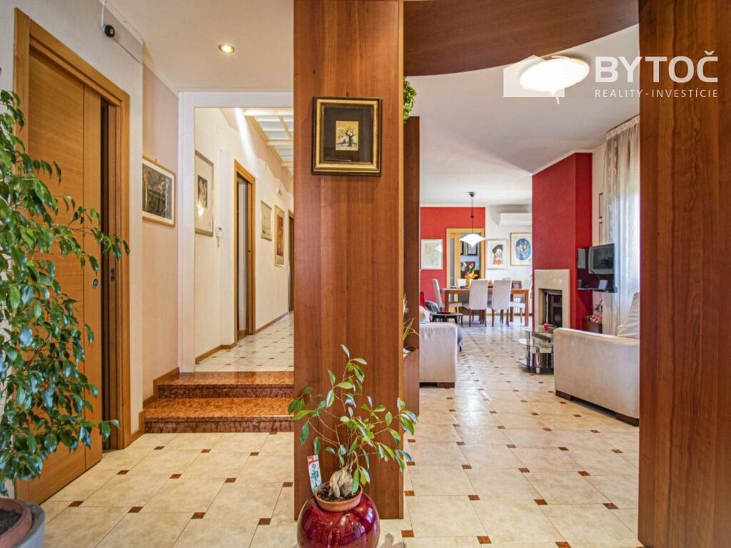 Rodinný dom/vila s rozlohou približne 180 metrov štvorcových, oponúka svetlú obývaciu izbu s krbom, kuchyňu s jedálenským kútom, pracovňu, tri dvojlôžkové spálne, dve kúpeľne a praktickú úložnú miestnosť. Nehnuteľnosť dopĺňa veľká pergola s terasou v zadnej časti a garáž! Cena 335.000 € (+ poplatky).