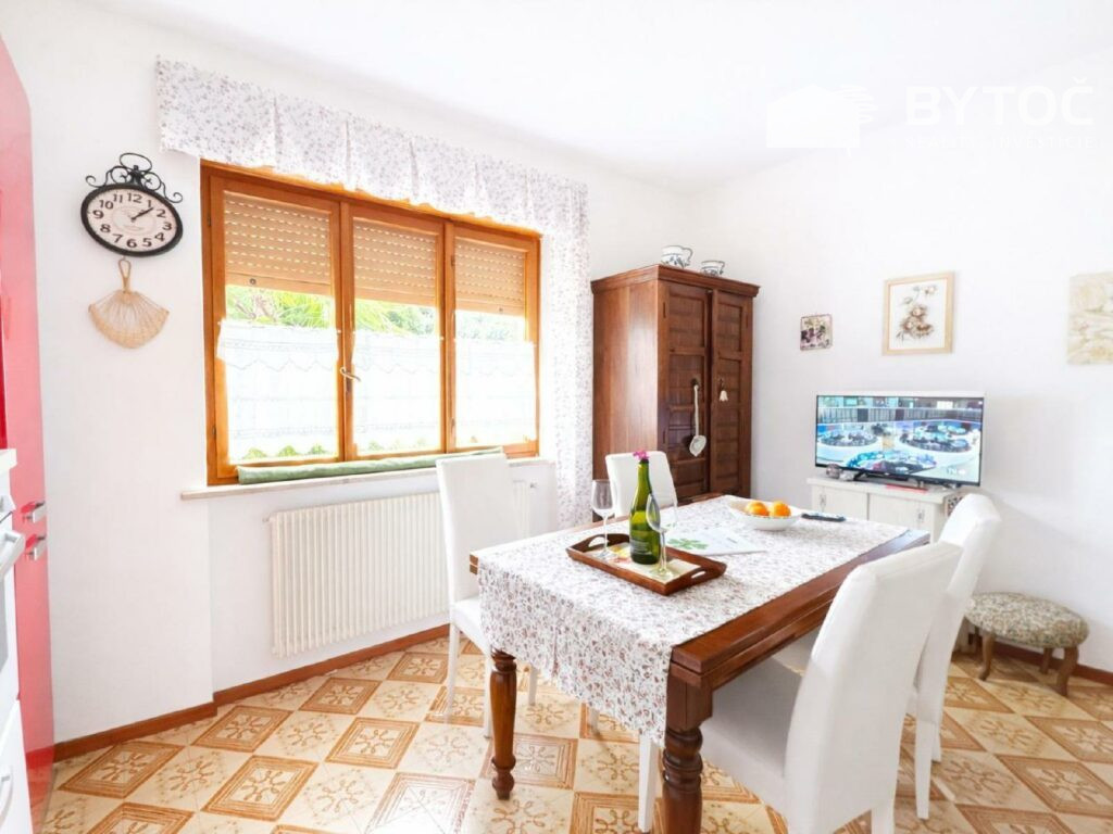 Dvojpodlažný samostatne stojaci dom obklopený záhradou s rozlohou približne 1 000 m2 pozostáva z garáže, technických miestností, kúpeľne (práčovne) a spoločenskej miestnosti na prízemí. Na prvom poschodí sa nachádza svetlá obývacia izba, kuchyňa s jedálenským kútom, dve dvojlôžkové spálne, kúpeľňa a veľká terasa. Dom v pôvodnom, no zachovalom stave ponúka príjemné bývanie, resp. rekreáciu pre rodinu neďaleko mora! Cena 160.000 € (+ poplatky).