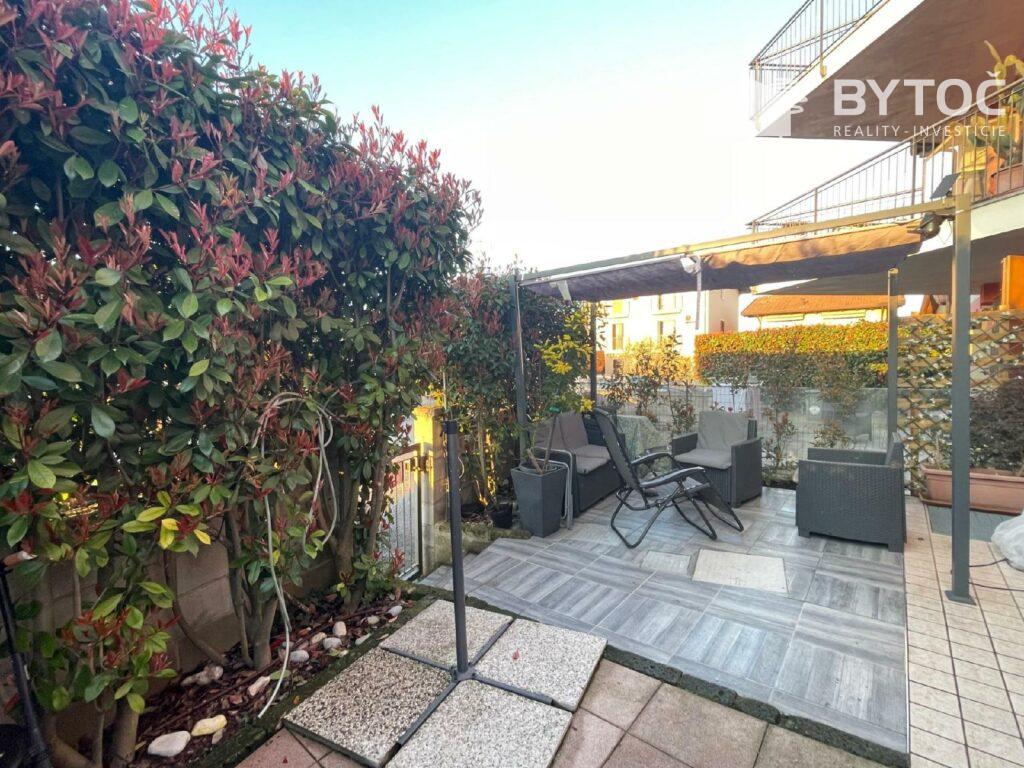Svetlý byt sa nachádza na prízemí málého kondomínia. Obývacia izba s kuchynským kútom a stolovaním sa otvára priamo do súkromnej záhrady/terasy. Dve spálne, kúpeľňa, pivnica a parkovcie miesto. Klimatizácia. Umiestnenie apartmánu je vhodné aj pre pobyt s domácim zvieratkom.